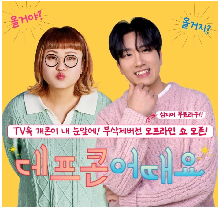 '데프콘 어때요'는 TV 프로그램 '개그콘서트'의 인기 코너를 무대 공연으로 재현한 쇼입니다. 개그맨 신윤승, 조수연 등이 출연하여 관객과 직접 소통하며, 방송에서 다루지 못했던 다양한 유머와 풍자를 선보입니다. 아래 사이트를 통해 무료공연 신청하셔서 즐거운 시간 보내시길 바랍니다.